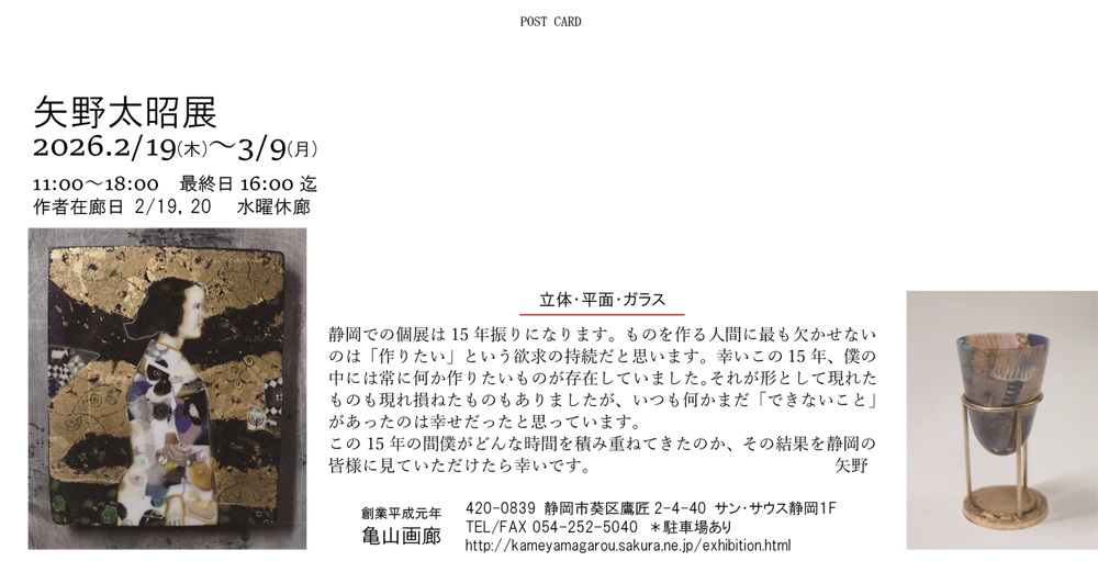 11:00~18:00※2/25水曜休廊最終日3/9は16:00まで駐車場有