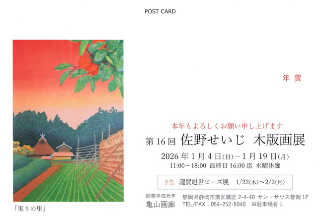 第16回 佐野せいじ 木版画展2026年1月4日(日)~1月19日(月) |